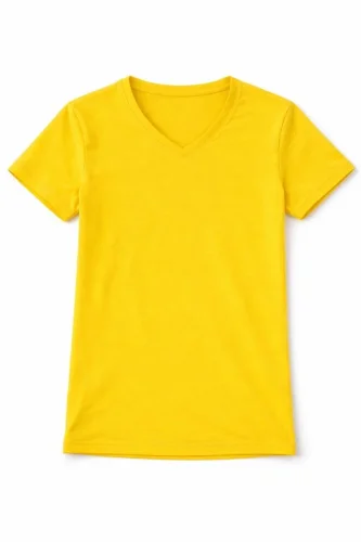 Genç Kız Çocuk V Yaka Tişört Yazlık Model Günlük Basic Body Sarı