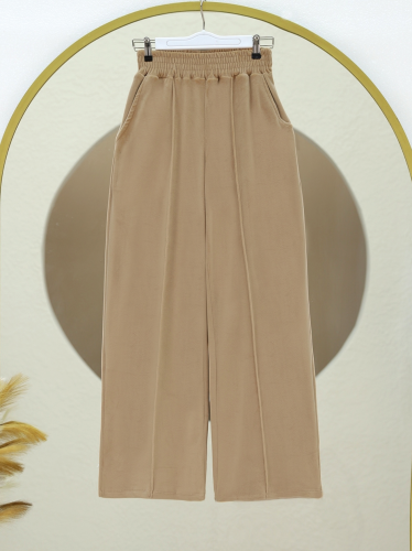 Çımalı Beli Lastikli Kadife Pantolon Vizon