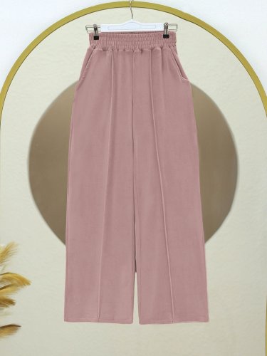 Çımalı Beli Lastikli Kadife Pantolon Pudra