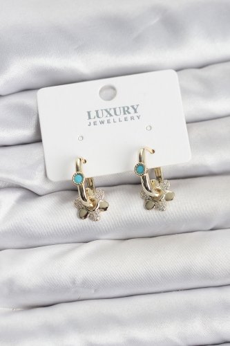 Mavi Taş Detaylı Pirinç Gold Renk Kadın Göçmen Küpesi