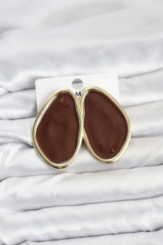 Pirinç Kahverengi Mineli Damla Model Vintage Plaka Kadın Küpe