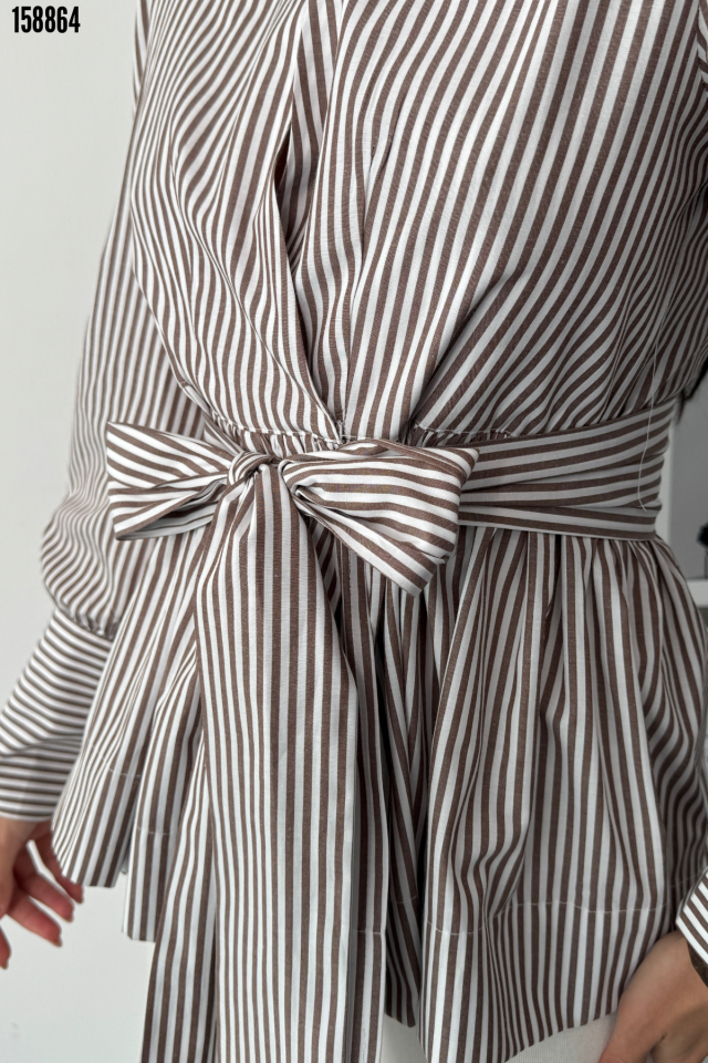ÇİZGİLİ BAĞLAMA DETAYLI KRUVAZE POPLİN GÖMLEK Kahverengi