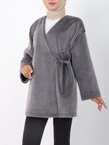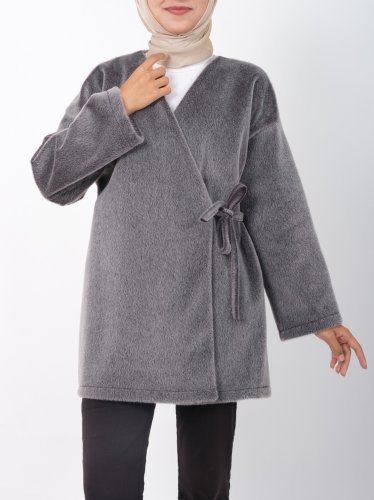 Yandan Bağlamalı Kürklü Ceket Füme
