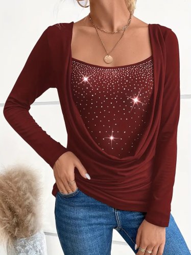 • Kadın uzun kollu derin degaje yakalı taşlı sandy bluz