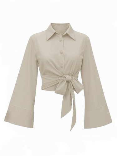 Yan Bağlamalı İspanyol Kol Düğmeli Gömlek Açık Vizon