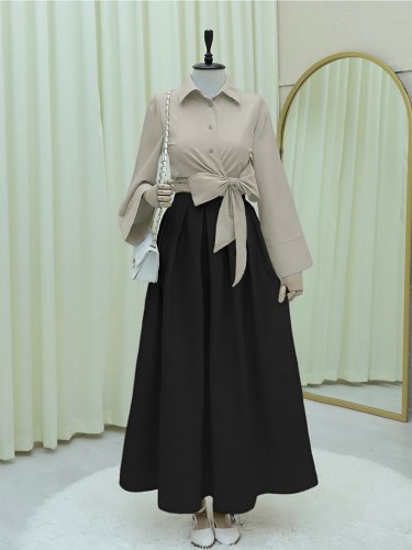 • Yan Bağlamalı İspanyol Kol Düğmeli Gömlek Açık Vizon