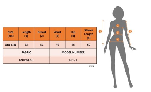 • Modelin Ölçüleri: Boy:165, Kilo:55, Göğüs:90, Bel:72, Kalça: 100