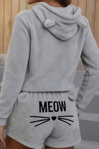• Kadın uzun kollu kapşonlu peluş bluz ve kısa short ikili takım