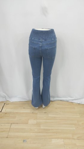 • Kadın yüksek bel yanları lastik önü düğmeli kot pantolon