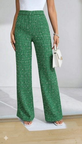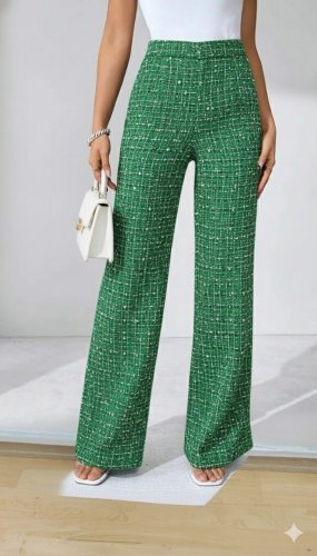 • Kadın yüksek bel paçaya doğru geniş dokuma pantolon