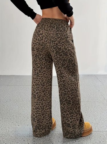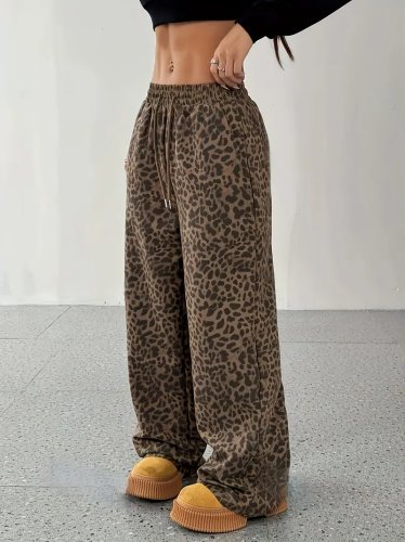 • Kadın yüksek bel lastikli bağcıklı geniş kesim iki iplik pantolon