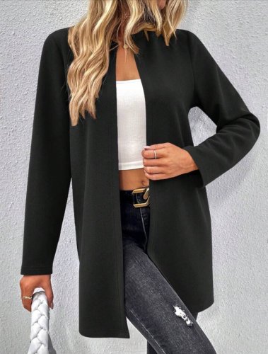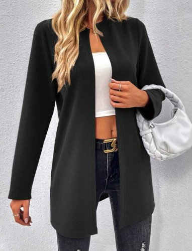 Kadın uzun kollu önü açık uzun modal ceket