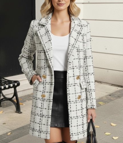 • Kadın uzun kollu yakalı önden düğmeli dokuma ceket