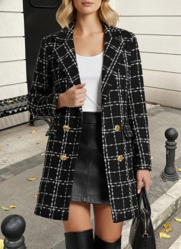 • Kadın uzun kollu yakalı önden düğmeli dokuma ceket