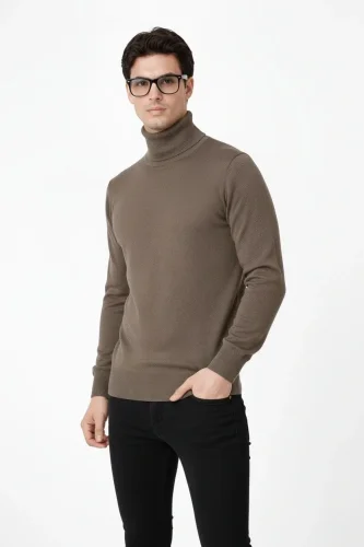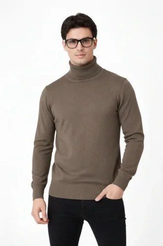 Tam Boğazlı Balıkcı Yaka Triko Kazak yumuşak dokulu Pamuklu ince Dokuma uzun kollu Rahat Regular kalıp Kahverengi