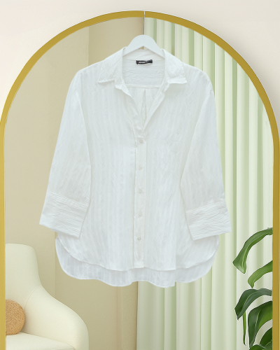 • Çizgi Desen Oval Kesim Krinkıl Gömlek Beyaz