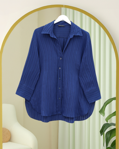 • Çizgi Desen Oval Kesim Krinkıl Gömlek Laci