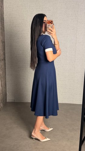 • Kadın polo yaka fermuar detaylı modal midi elbise