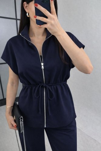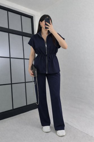 • Kadın yarasa kol fermuar ve lastikli bağcık detay ceket pantolon ikili takım