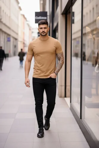 • Erkek TShirt Bisiklet Yaka Slim Fit dar kesim Likralı Tişört Günlük Basic Body Kahverengi