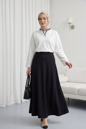 • V Yakası Çift Kat 2 İplik Penye Bluz Beyaz