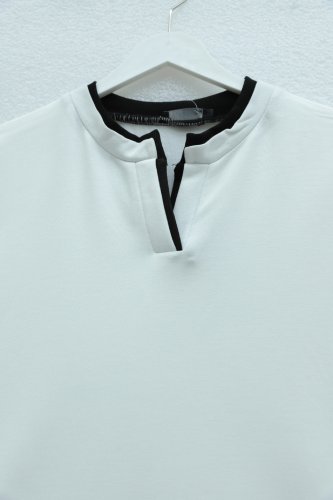 V Yakası Çift Kat 2 İplik Penye Bluz Beyaz