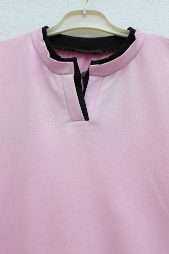 V Yakası Çift Kat 2 İplik Penye Bluz Pembe