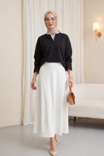 • V Yakası Çift Kat 2 İplik Penye Bluz Siyah