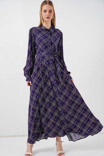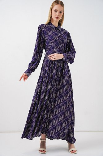 Boydan Düğmeli Uzun Tesettür Elbise 2588 Mor