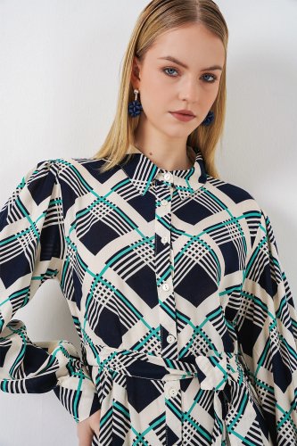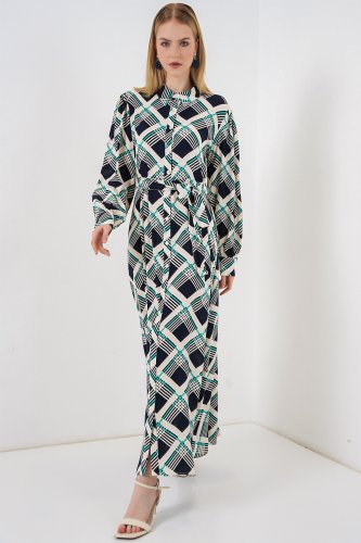 • Boydan Düğmeli Uzun Tesettür Elbise 2588 FLacivert
