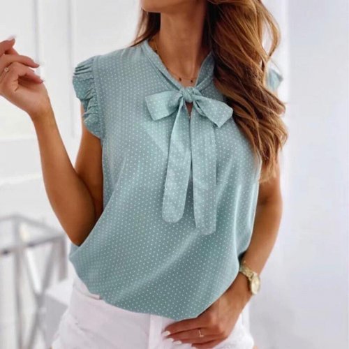 • Moskrep kumaş yaka detaylı puantiyeli bluz
