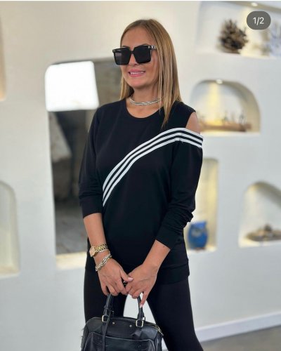 • Kadın bisiklet yaka çapraz ribana detay iki iplik kumaş bluz