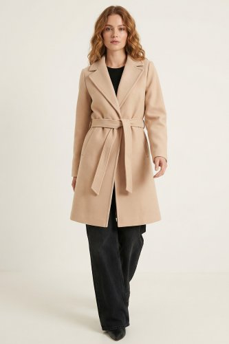 Kapüşonlu Peluş Ceket 5236 Ekru